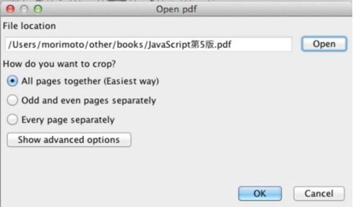 電子書籍をPDFで買ってiPadで読もうと思っても、意外と気になるのが余白の部分。自分が今愛用しているPDFリーダアプリはi文庫HDなのだが、これはトリミング表示機能はついていない(GoodReaderは付いている)。なので、PDF自体を先にトリミングしてしまおう…